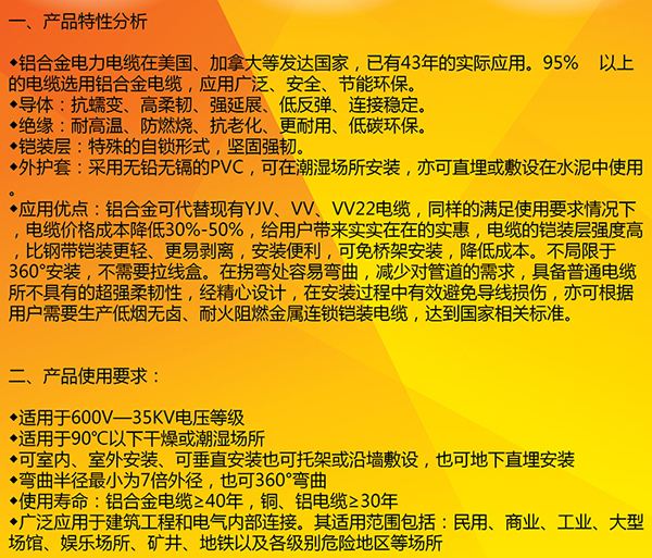 鋁合金電纜:鋁合金電纜ZR-YJLHV 瀏覽:3613